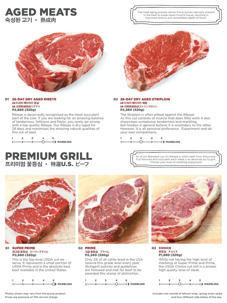 | Princess’ Platter (Wagyu Makikarubi, Prime, Yangnyeom Galbi) | ₱ 5,380.00 |